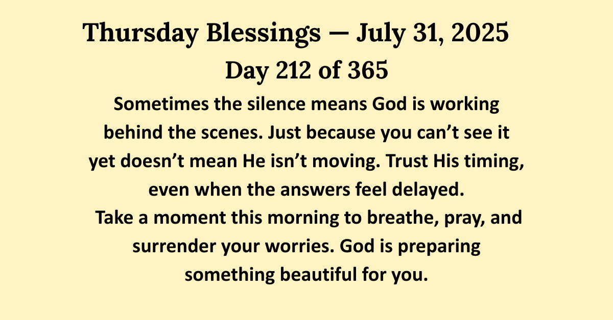 Remember, God doesn’t work according to your clock—He works according to eternity. When He’s quiet, trust that He’s working in ways you don’t yet understand.