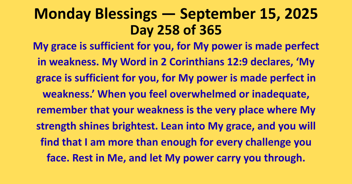 God’s grace is not limited by your failures, your fears, or your circumstances. His grace meets you exactly where you are. The world may tell you to be stronger, try harder, or do more, but God says: “My grace is sufficient.”